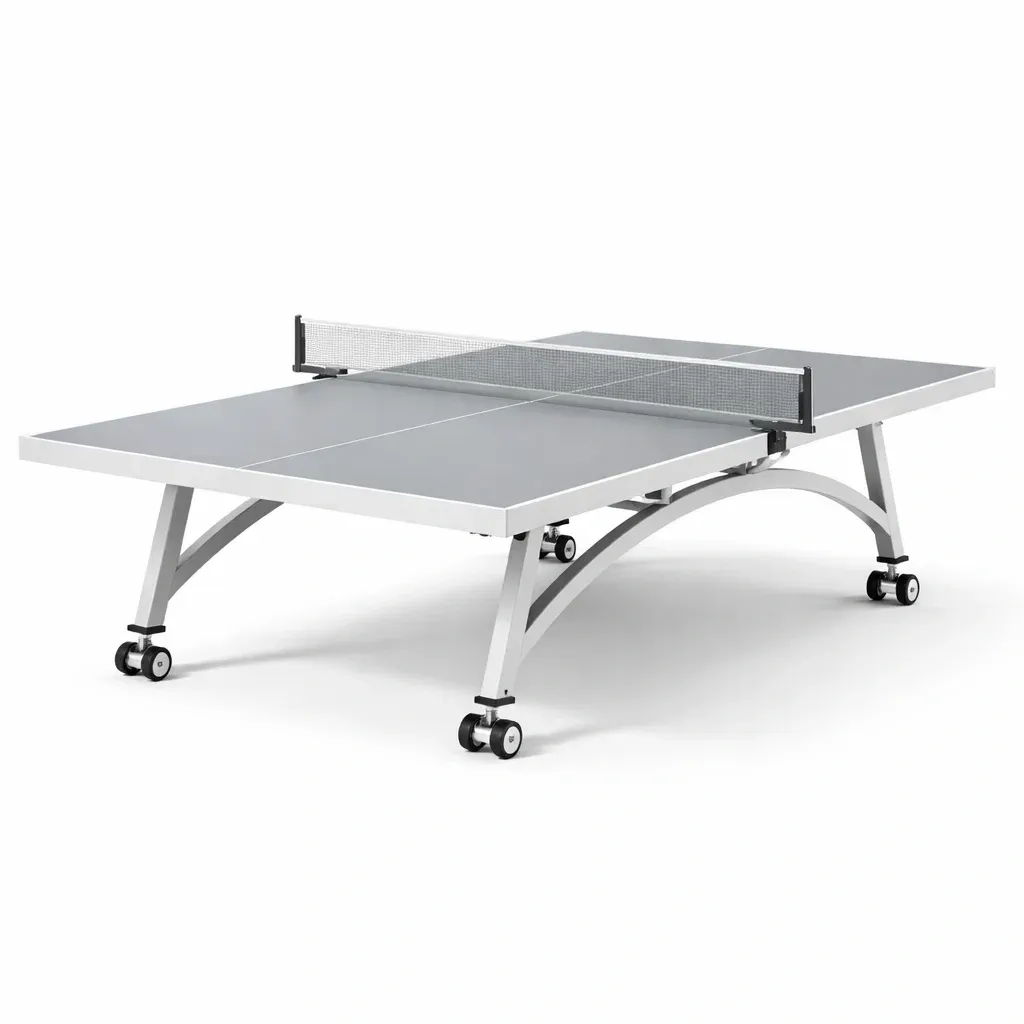 Tavolo da ping pong pieghevole con piano in MDF grigio e struttura in alluminio
